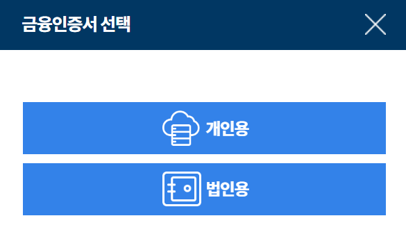 저 역시 금융인증서와 공동인증서를 선택하여 사용합니다.