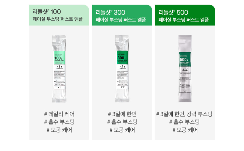 새롭게 출시된 리들샷은 총 5종으로 기존의 리들샷 100/300 에 500/콜라겐/시카 리들샷이 추가 되었네요.