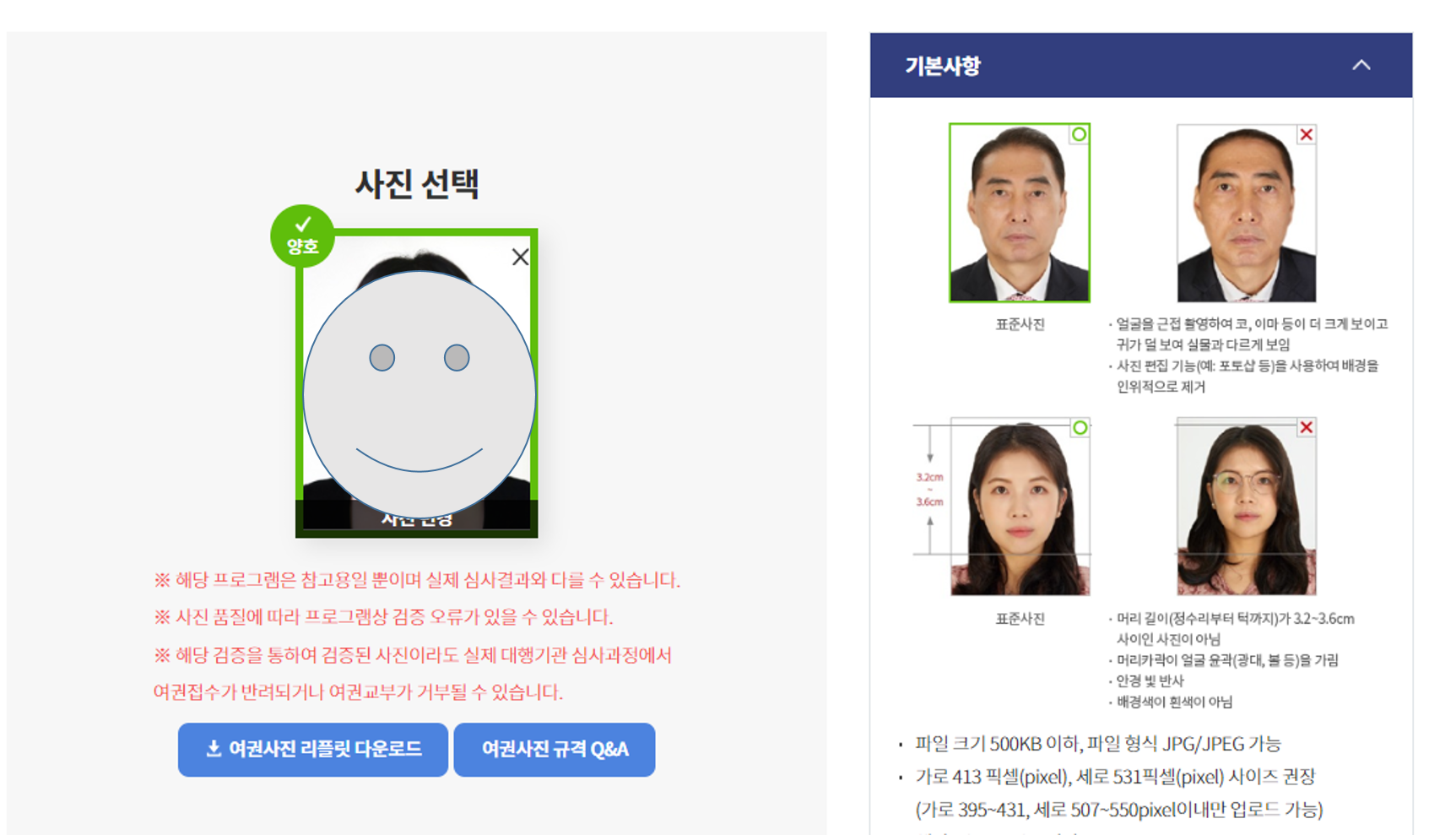 이 또한 여권재발급신청 전에 여권사진 검증을 통해 찍으신 사진의 검증을 통하시면, 여권신청의 반려가 되지 않고
