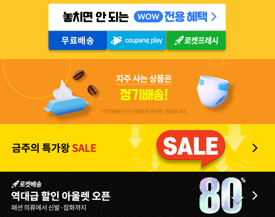 - 와우 전용 특가 주시하기 : 매일 아침 특가 상품 확인 필요한 물건은 특가 때 구매하기